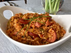Jambalaya is a fantastic one pot meal which is not only easy to prepare, it’s economical, it feeds a large crowd, and leftovers can easily be frozen. To make life even easier, double the recipe and freeze half for another day. This version uses cooked ham and smoked sausage so a lot of the cooking … Continue reading Cajun Jambalaya